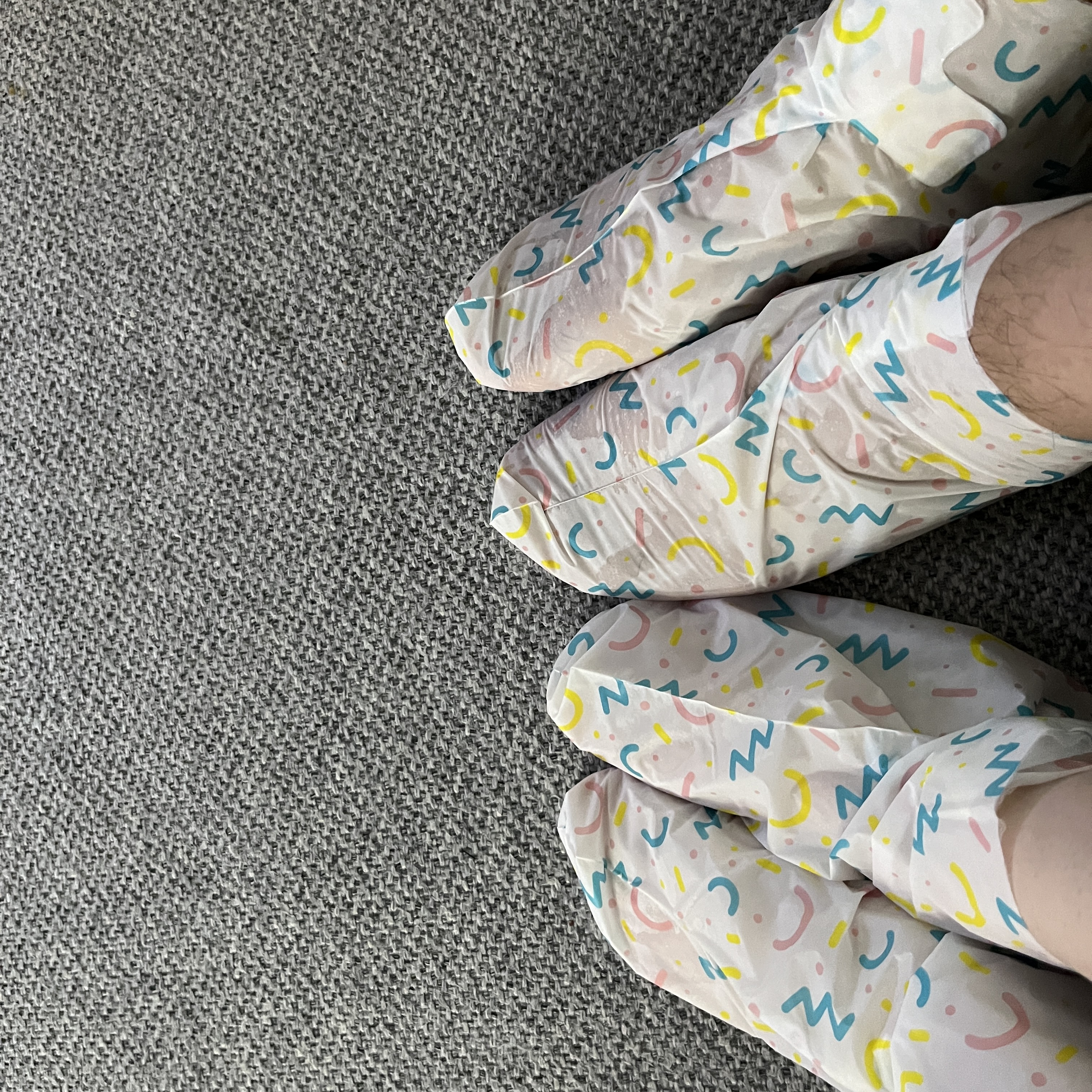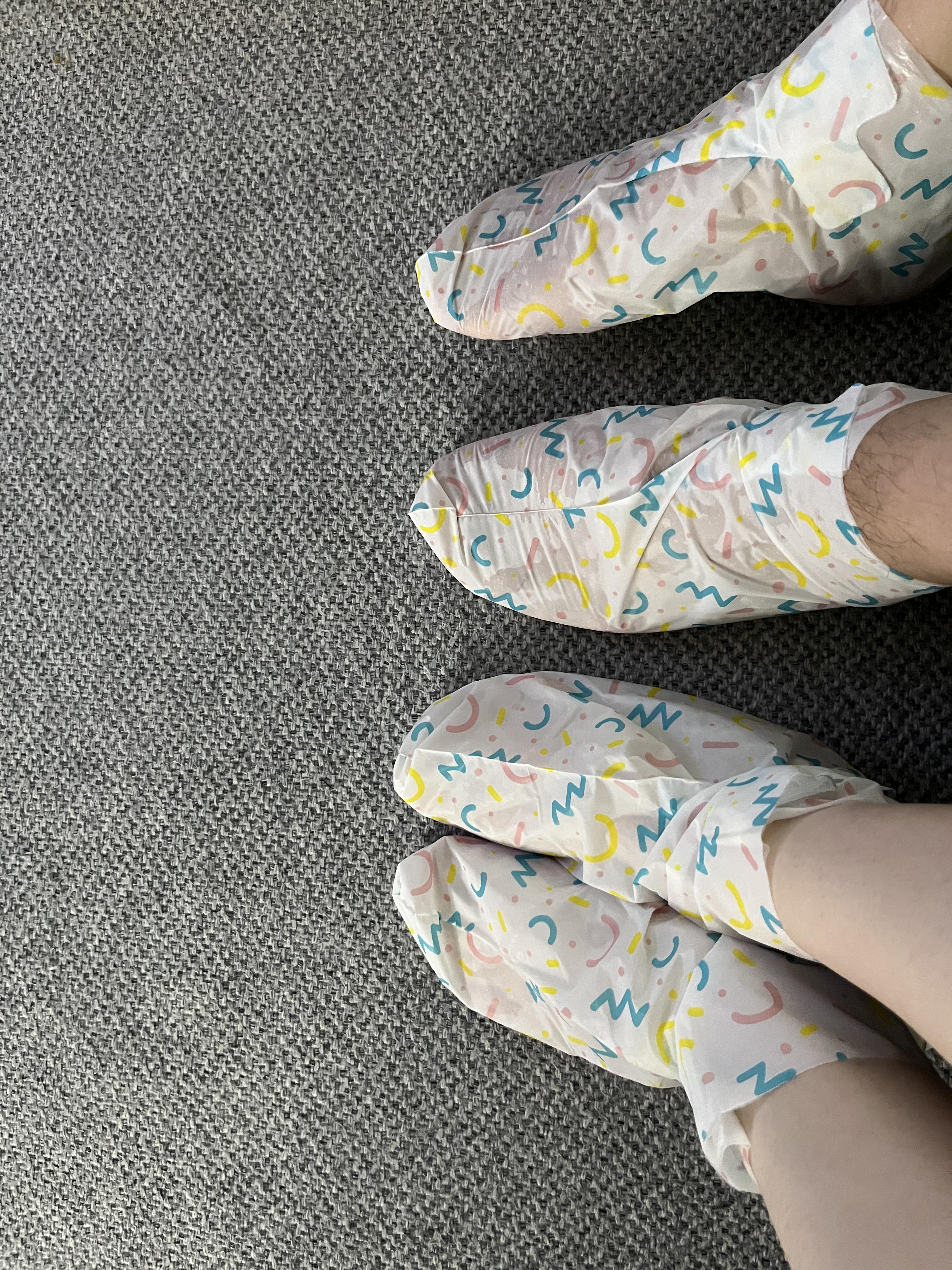 집에서 보습제나 바세린 바르고 발모양 비닐팩을 사서 껴본적이 있었는데요. 그 위에 양말까지 신어서 그런지 비닐팩은 그 안에서 돌아가서 발목을 막 쪼이고 불편하더라구요.