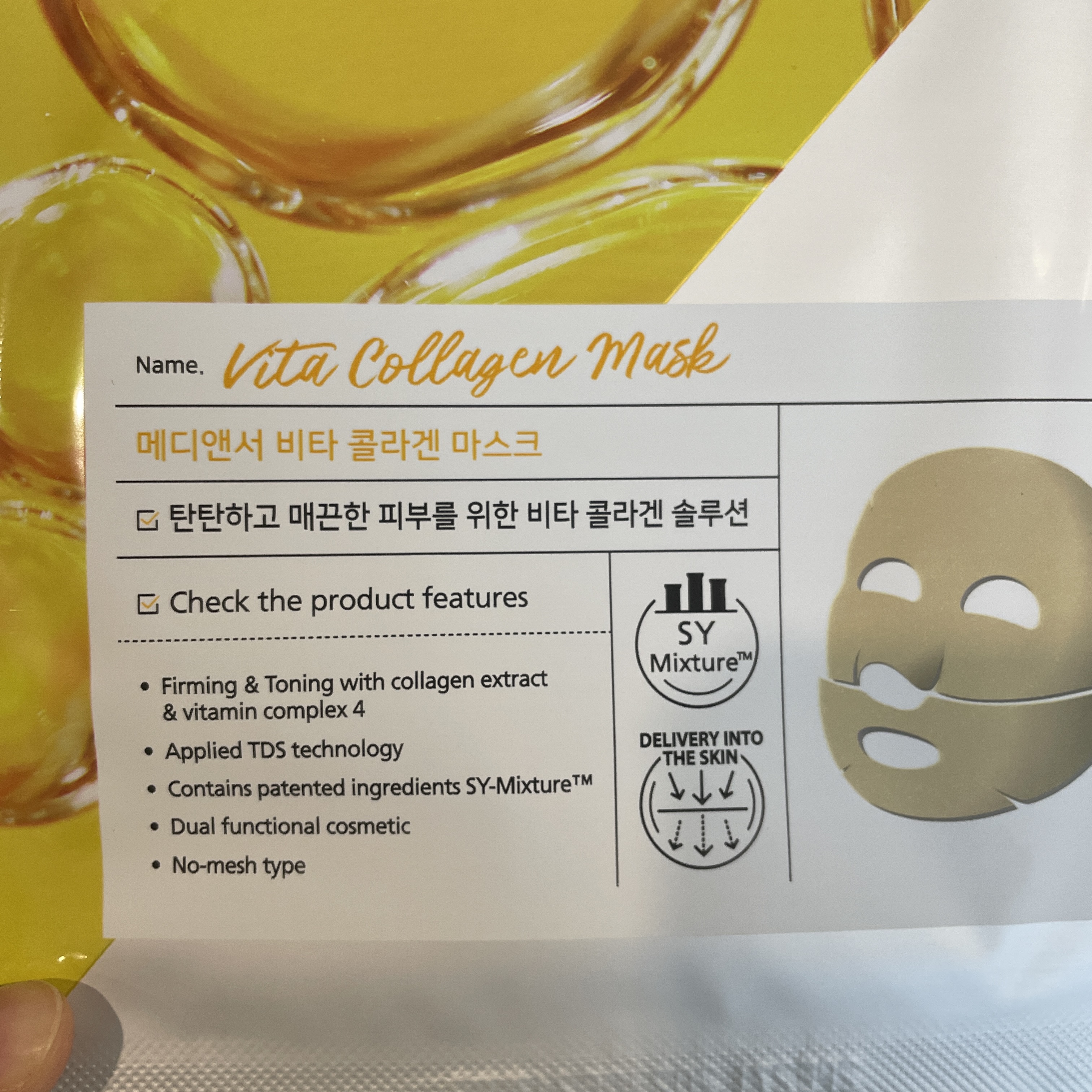 메디앤서 비타 콜라겐 마스크, 노란색 마스크가