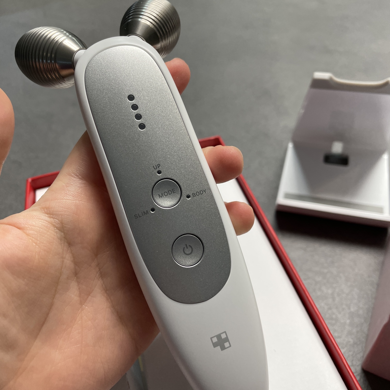 저는 손목이 매우 약해서 웬만하면 손목에 무리가는 행동은 안하려고하는데요. 메디큐브 에이지알 더마 ems 샷은 턱선에 대는 그 부분이 꽤 무겁더라구요. 사용하다보면 손목에 무리가 좀 와서 그래서 이 점이 당근한 세번째 이유였습니다.