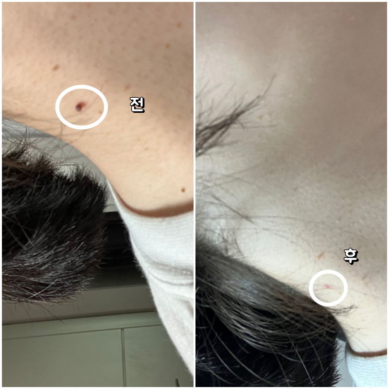 제 목에 남이 봐도 보일만한 진한색의 꽤 큰 쥐젖이 있었는데요. 여러가지 방법으로 이 쥐젖을 없앴는데요.