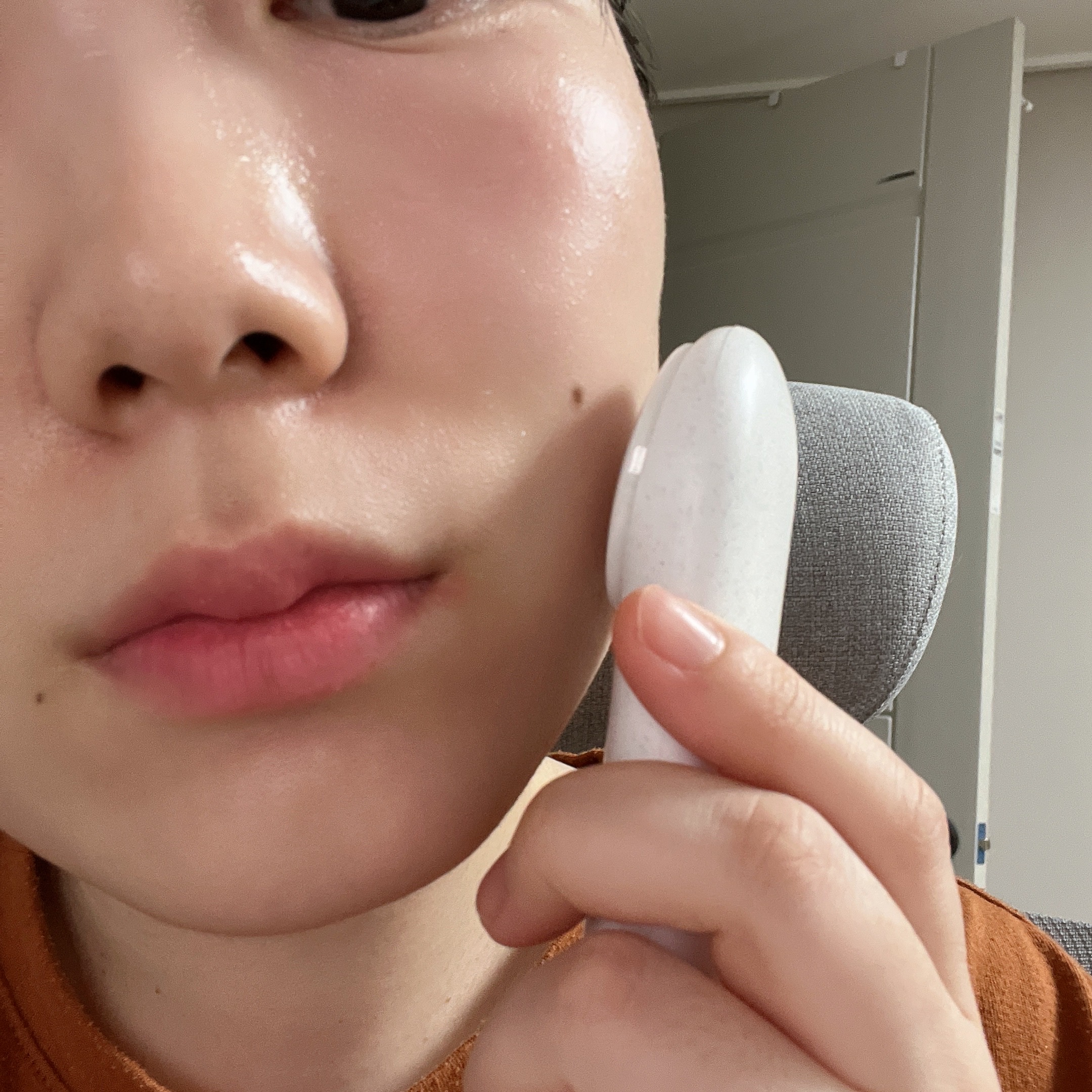 저는 손이 작은편이고 손목이 안좋아서 미용기기가 무겁거나 그립감이 안좋으면 불편해서 잘 안쓰게되더라구요. 메이크온 젬소노 테라피는 제가 기존에 사용하던 기기들보다 매우 가벼운편(68g)이라 사용하기 편한점은 좋았어요.