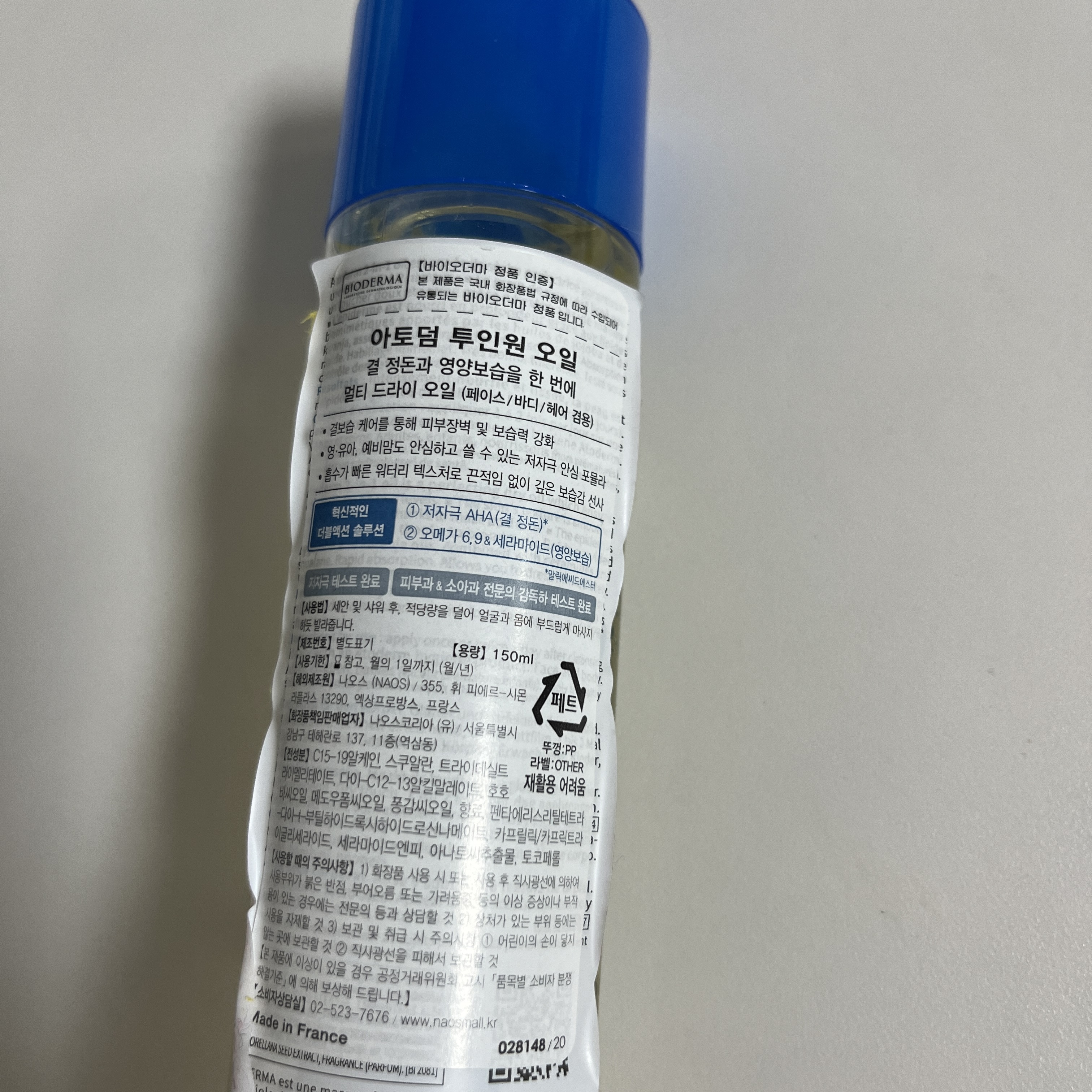바이오더마 아토덤 투인원 오일이 특이했던 점은 AHA 성분이 함유되어있다는거였어요. 바디오일에 저자극 AHA성분을 함유해 피부결 정돈에 도움을 준다니, 이거 참 신박하지 않나요?