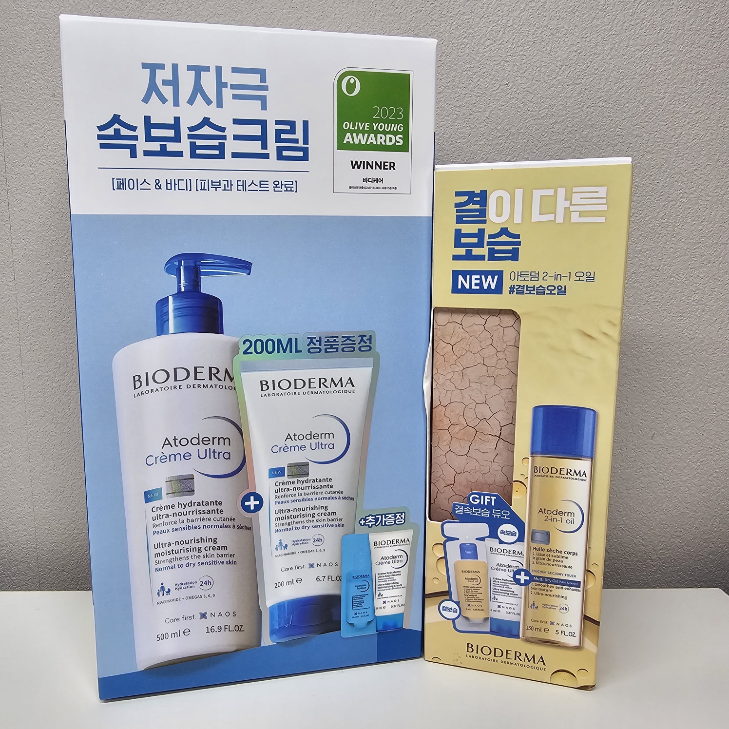 눅스 드라이오일의 제형이 끈적이지 않아서 좋았던 기억이 있어서 바이오더마 아토덤 투인원 오일도 구매하게되었어요. 멀티 드라이오일에 얼굴과 몸 겸용으로 사용이 가능해서 하나 사면 뽕뽑게 잘 쓸 수 있을 것 같더라구요. 그래서 올리브영에서 바이오더마 바디크림이랑 같이 세일할 때 구매했답니다.