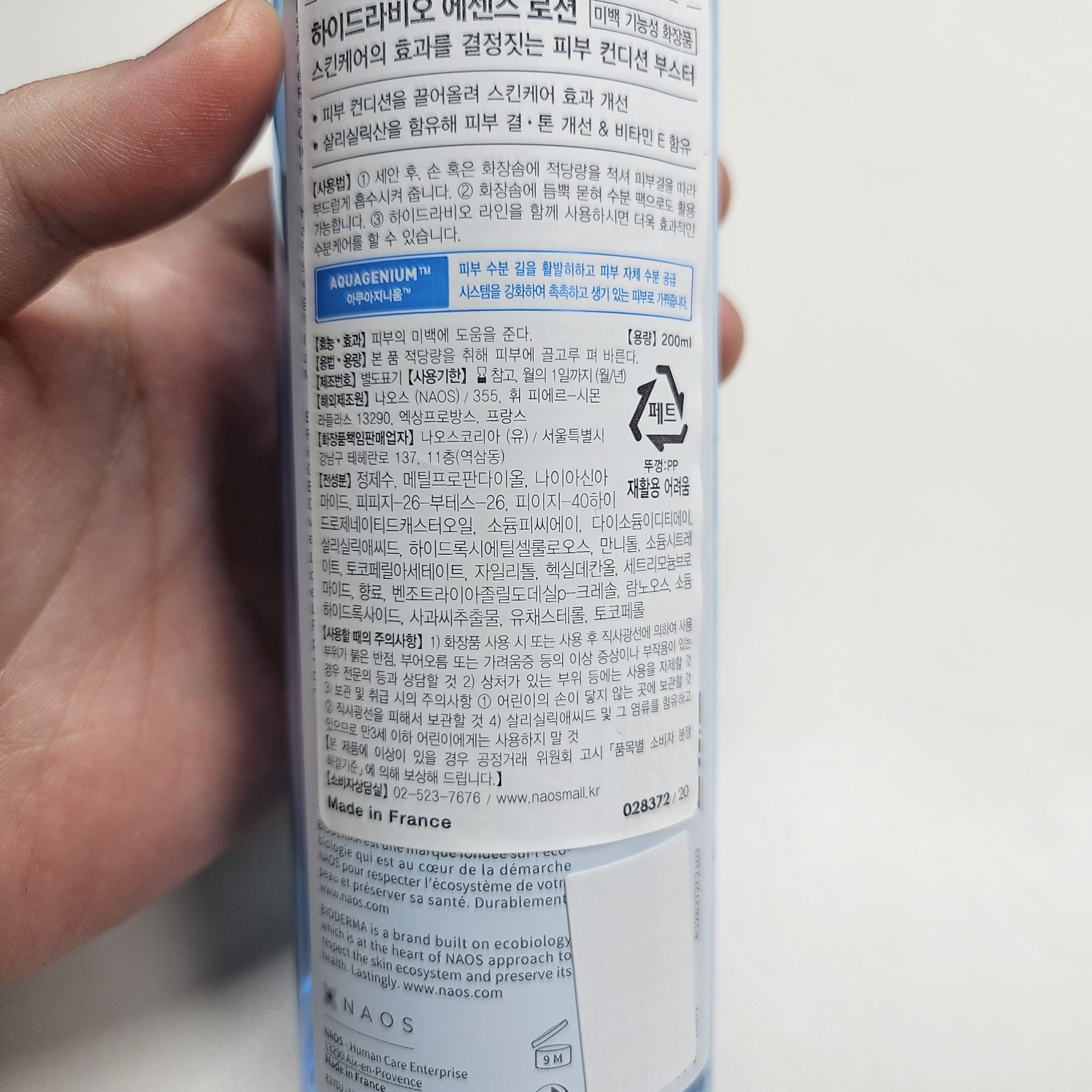 또 바이오더마의 독자적인 기술로 다프TM, 아쿠아지니움TM이 함유되어있어요. 피부 자체의 방어력을 길러주고, 수분손실 방지 및 수분급 강화에 도움을 줄 수 있다고 합니다.