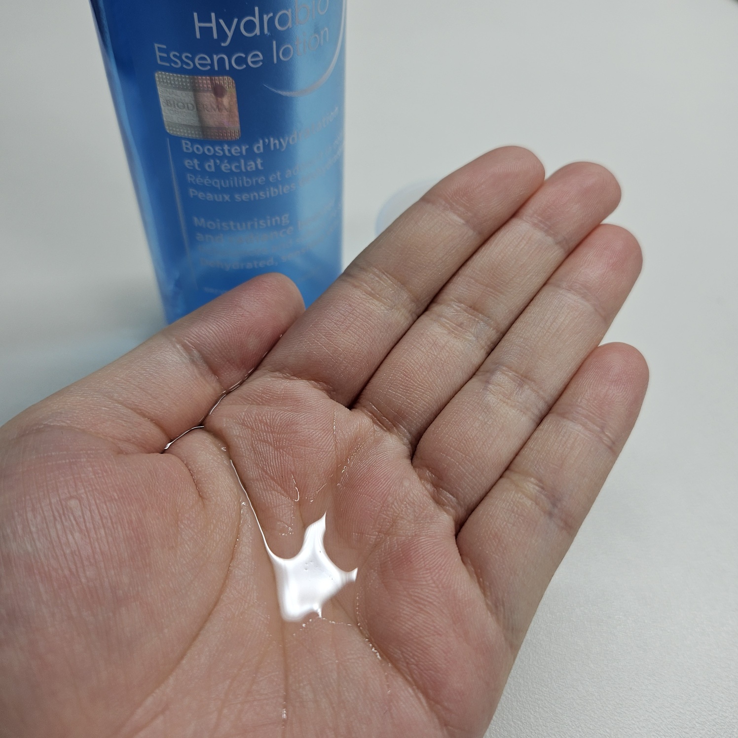 아, 그리고 정말 이상한게 바이오더마 하이드라비오 에센스로션은 손에 덜어 비비면 거품이 나요.
