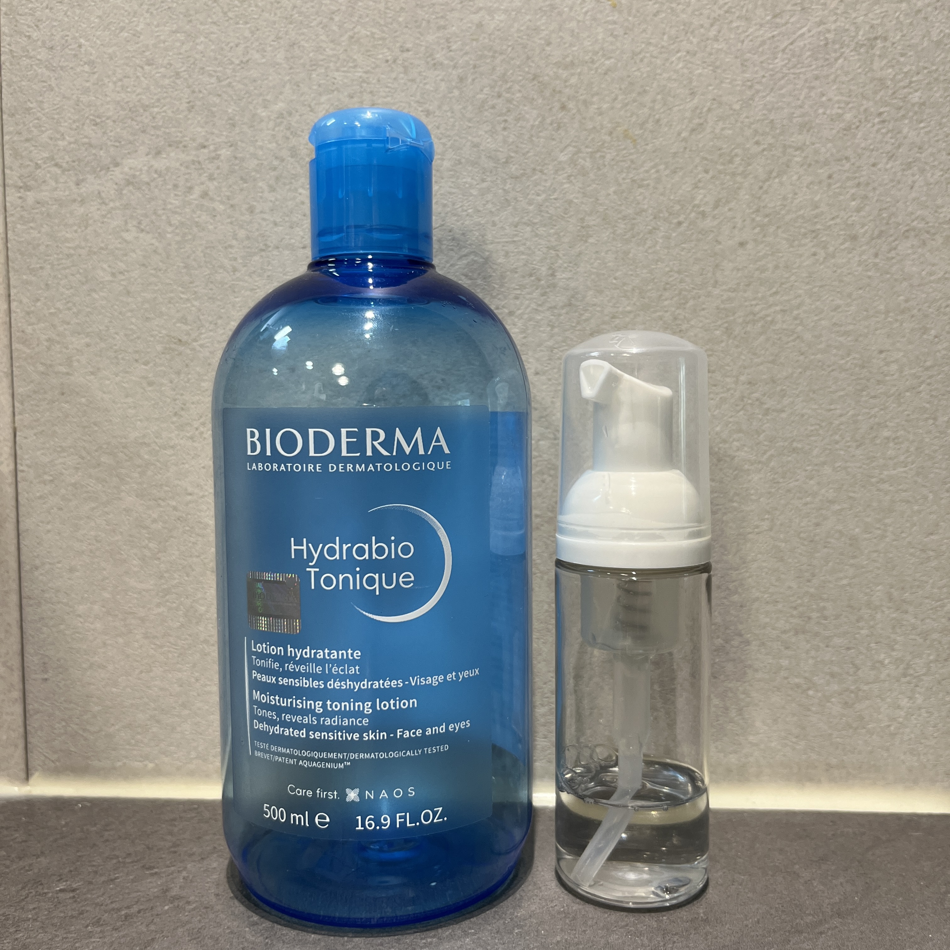 이 제품 거품용기에 넣어서 사용하면 레이어링해서 발라주기도 좋고, 흡수력도 좋아져서 더 좋더라구요. 저는 거품용기에 하이드라비오 토너를 넣고 클렌징할 때 사용하기도 했어요.(클렌징밀크나 오일 유화시키는 용도로 사용!)