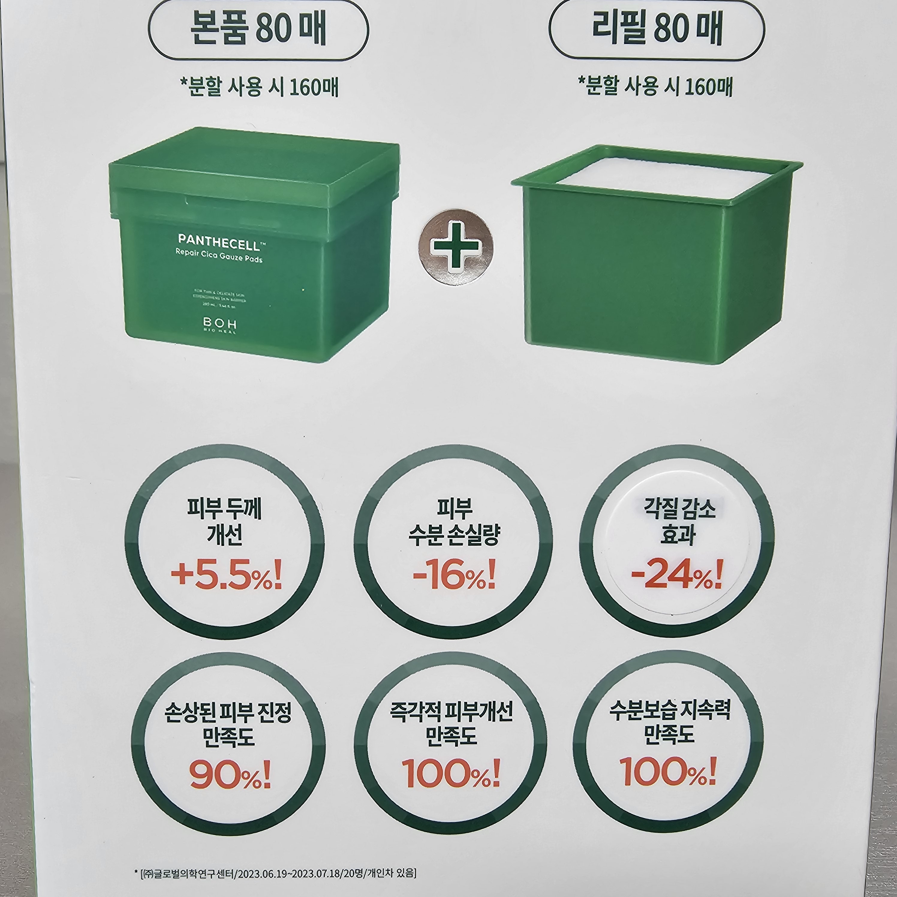 바이오힐보 판테셀 리페어시카 거즈패드는 2주 사용 후 피부 두께 측정값이 5.5% 개선된다는 설문조사결과가 있어요.