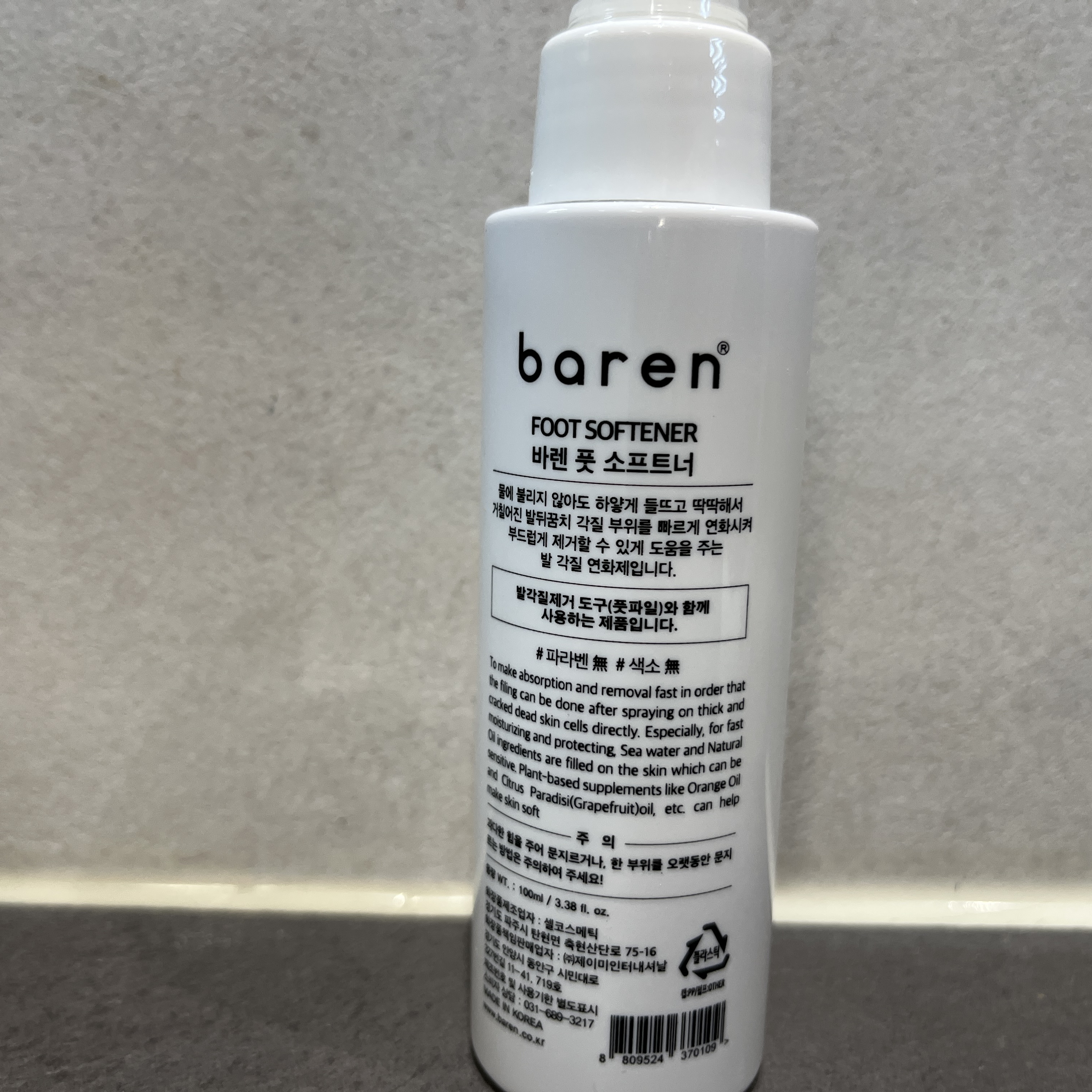 뭔가 다른 방법이 없을까? 바세린, 우레아 성분 발라주기 등으로는 택도 없다 싶어서 검색하다 발각질 연화제를 알게되었어요. 바렌 풋 소프트너인데요. 각질많은 남편한데 사용해보니 이거 정말 신세계더라구요!