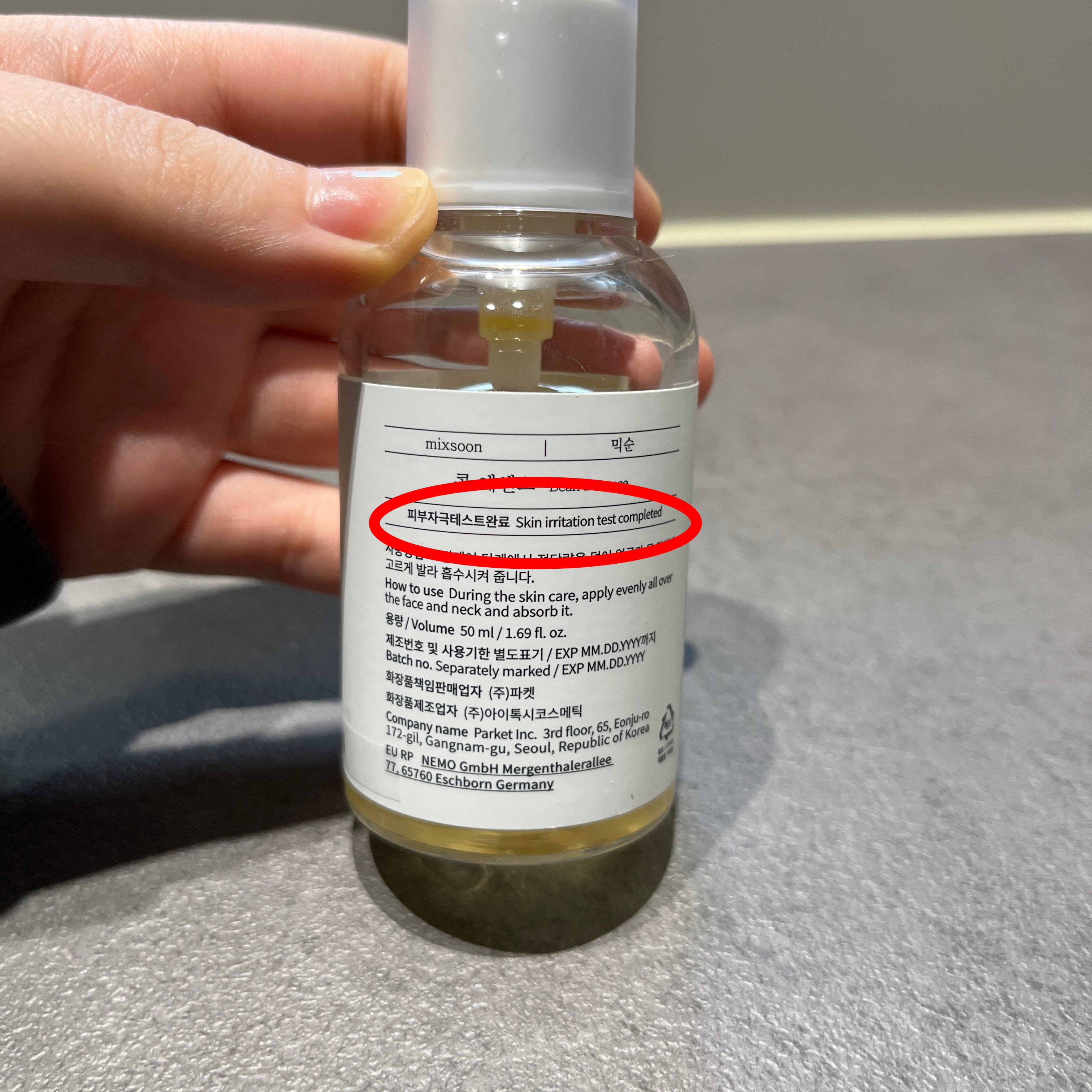 2. 믹순 콩에센스를 피부에 바로 짜서 올려준다.