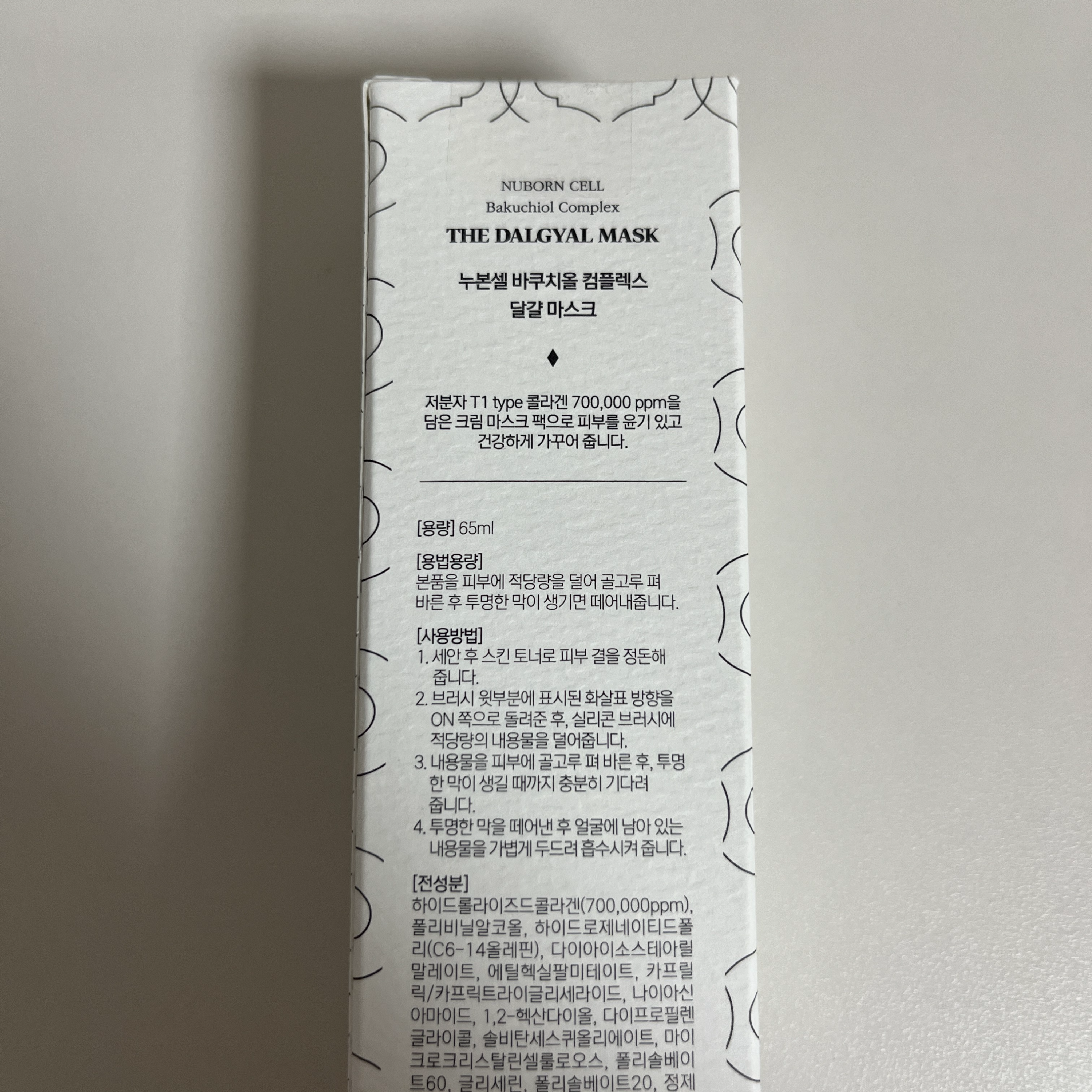 블랑두부 달걀마스크는 300달톤의 초초초저분자 콜라겐, 그것도 T1 콜라겐만 100프로 함유되어있어요. 전체적으로보면 블랑두부 달걀마스크에는 저분자 T1 콜라겐이 70% 함유되어있다고 합니다.