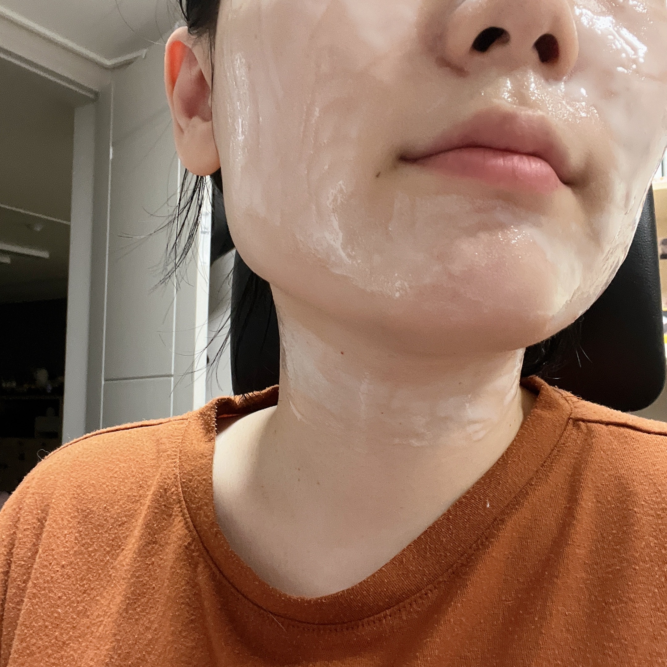 필오프할 때도 자극이 전혀 없고, 달걀마스크를 떼어내고나면 피부에 광이 예쁘게 나요. 제가 사용해본 비슷한 다른 제품들보다 광이 자연스럽게 이쁘고, 너무 미끌미끌 거리지 않고 적당히 보들보들거려서 정말 좋더라구요.