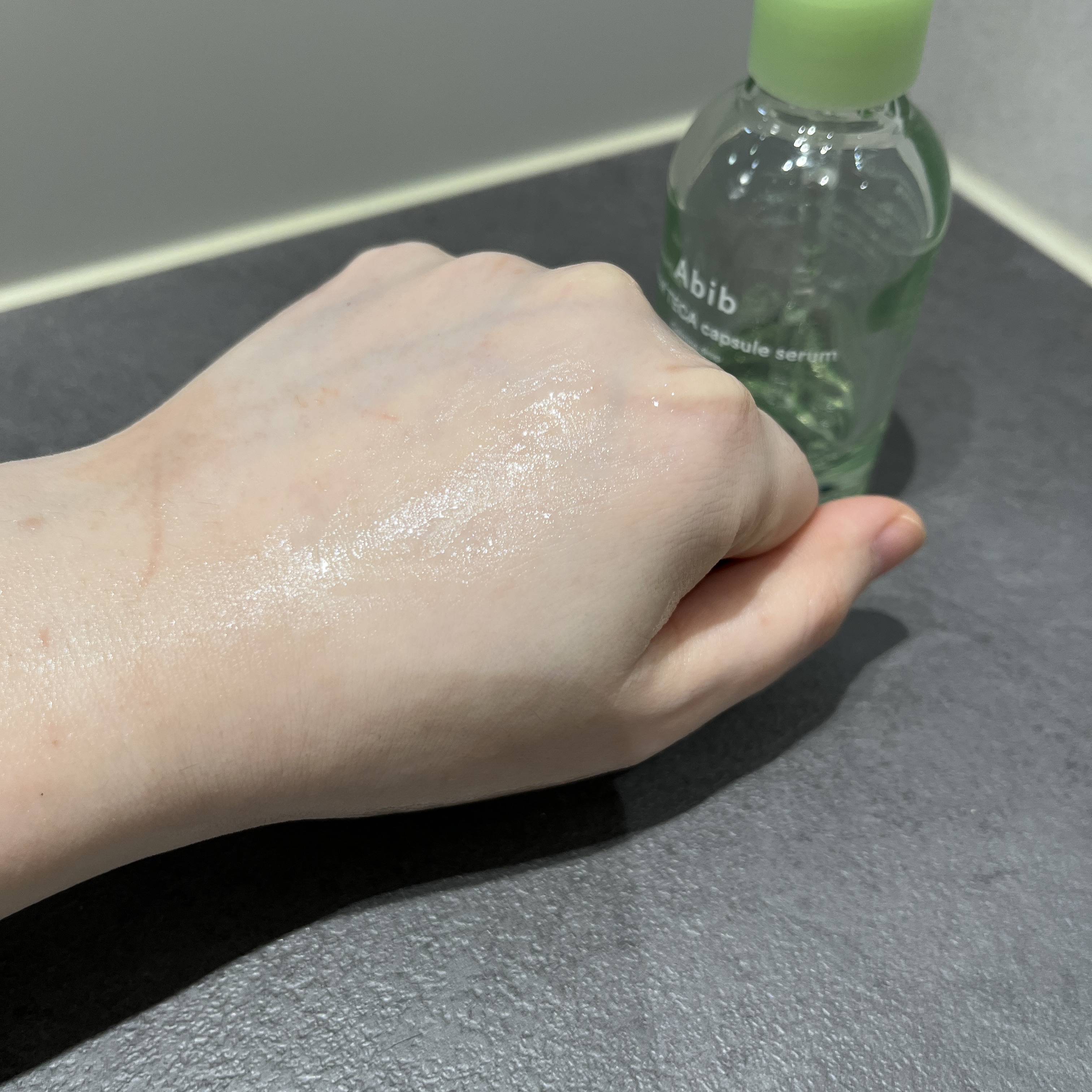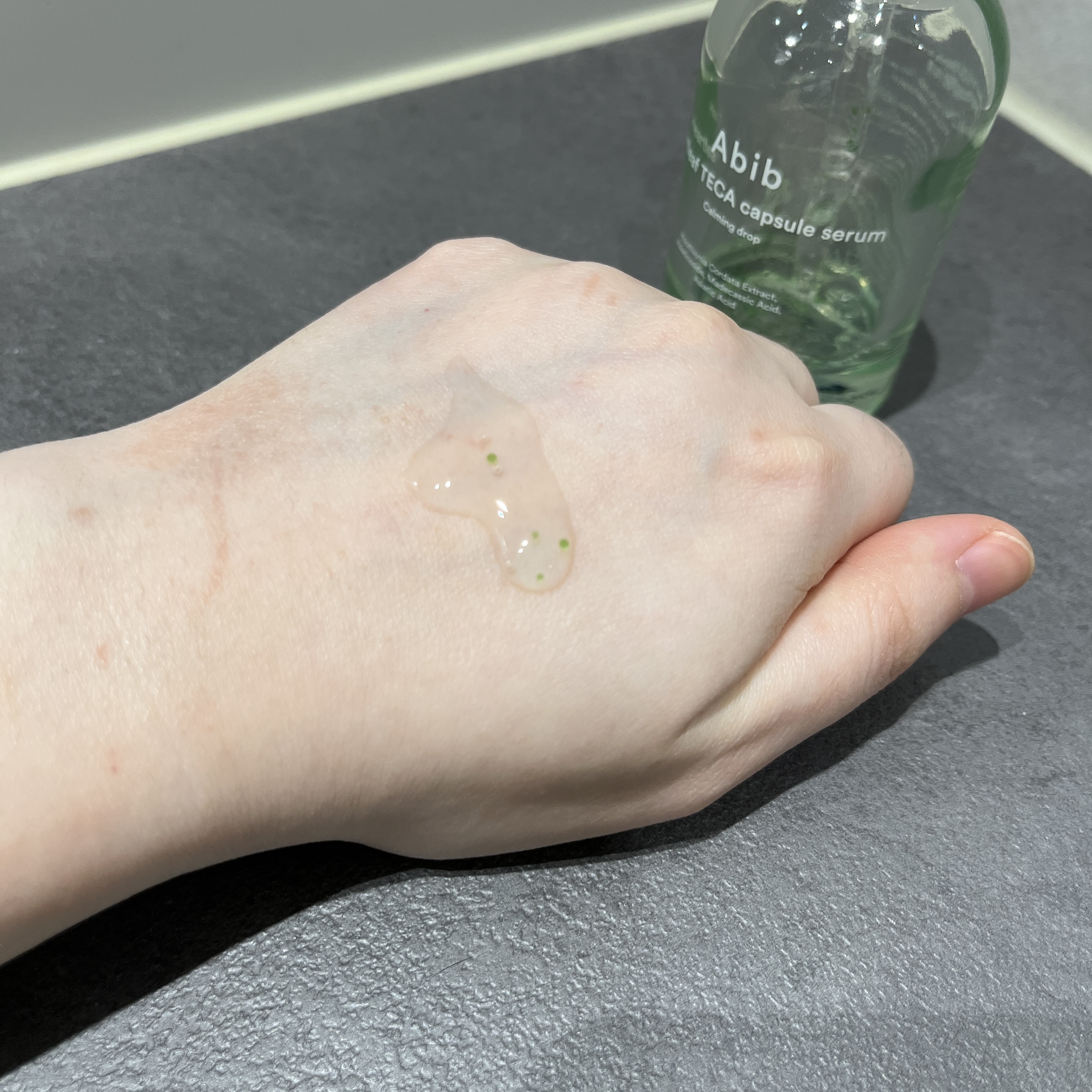 아비브 어성초 테카 캡슐 세럼 카밍드롭은 오일캡슐이 들어있는데요. 막제가 함유되어있지 않아서 그런지 피부에 답답한 막이 생성되지 않고 산뜻하게 발리고 피부에 자극없이 사용감도 좋았어요.