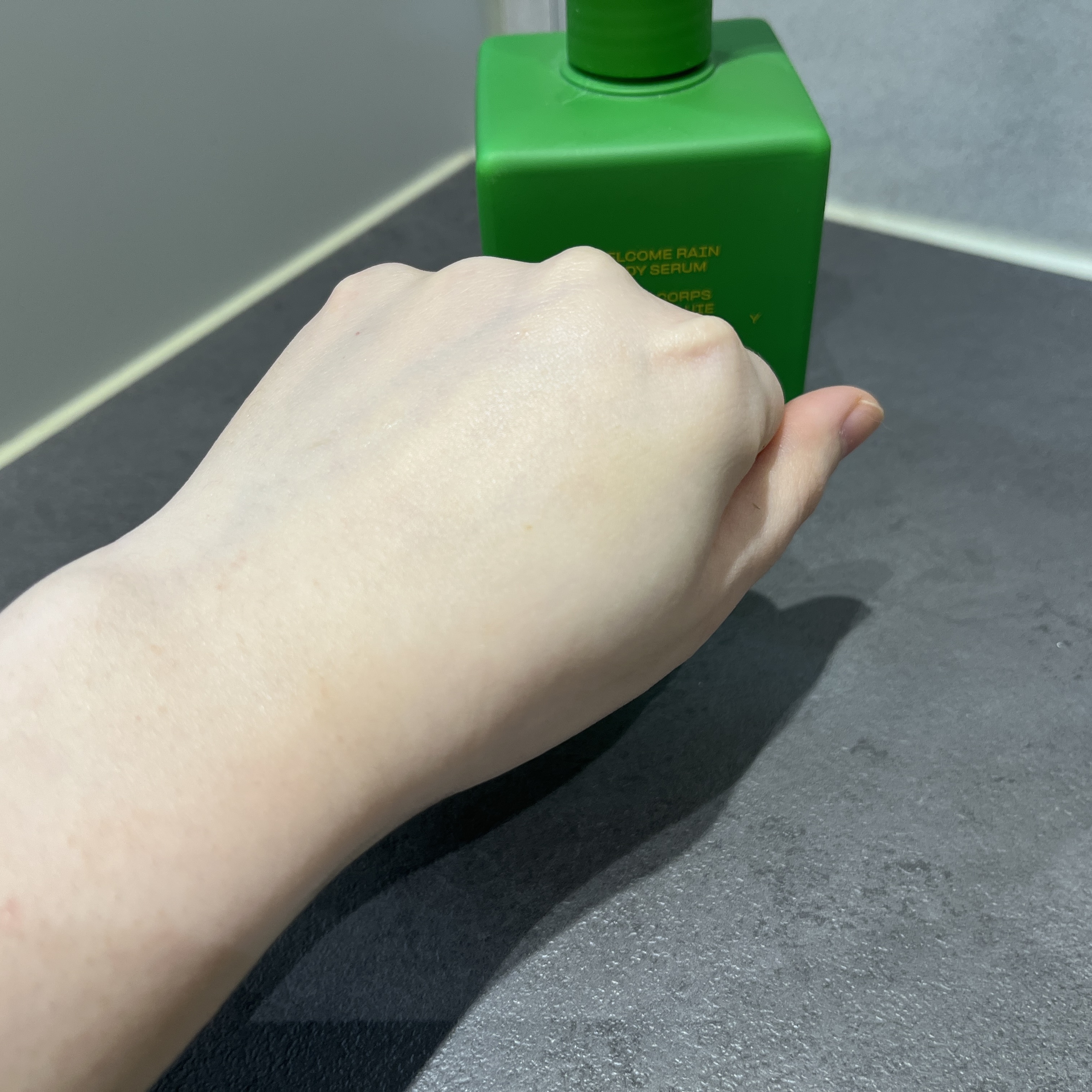 이 제품에서 가장 눈에 띄는 점은 바로 제형입니다. ‘세럼’이라는 이름이 붙은 제품답게, 피부에 닿았을 때 매우 가볍고 부드럽게 발립니다. 일반적인 바디로션이나 크림과 비교했을 때 훨씬 얇은 질감이었어요. 발림성도 훌륭해서 제품을 덜어내어 피부에 바르는 순간 부드럽게 스며들고, 끈적임이 전혀 남지 않는 점이 정말 마음에 들었습니다.