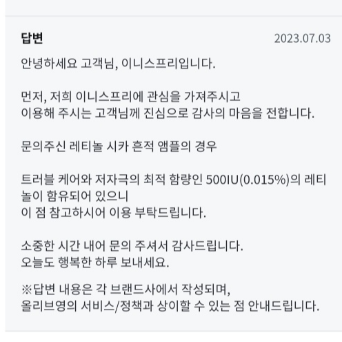 올리브영 Q&A에 올리려고 했는데,