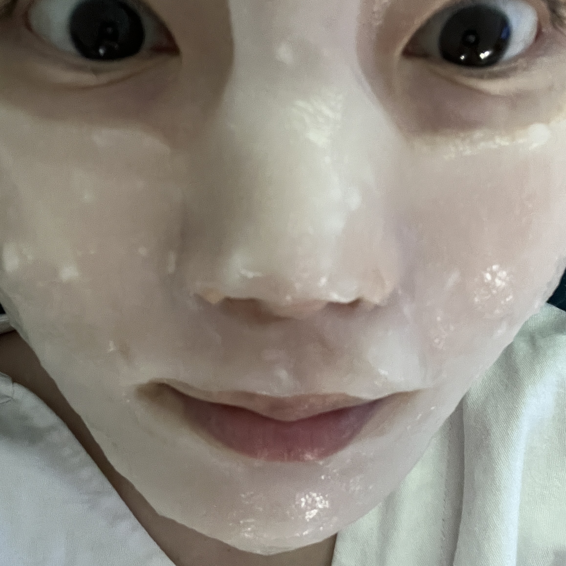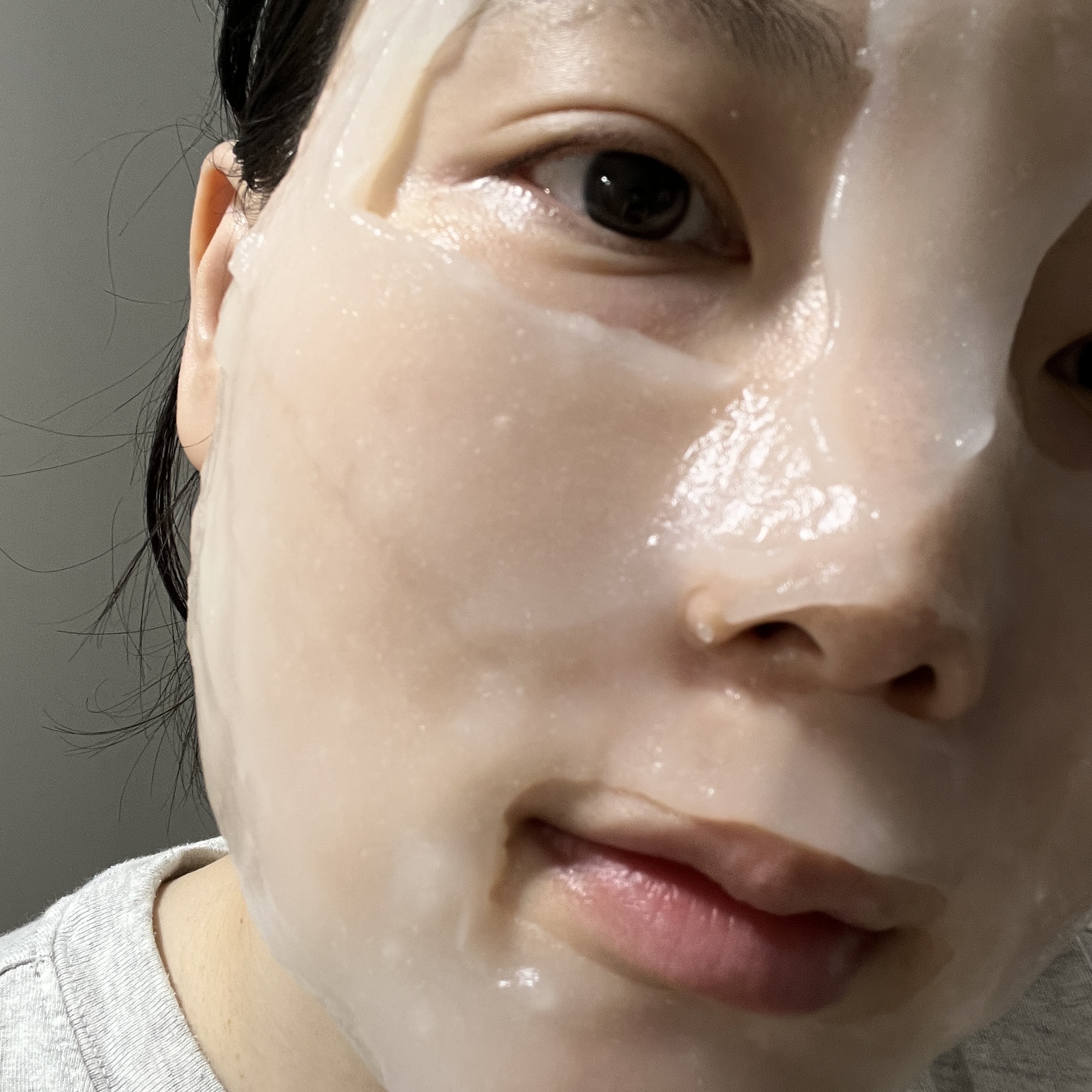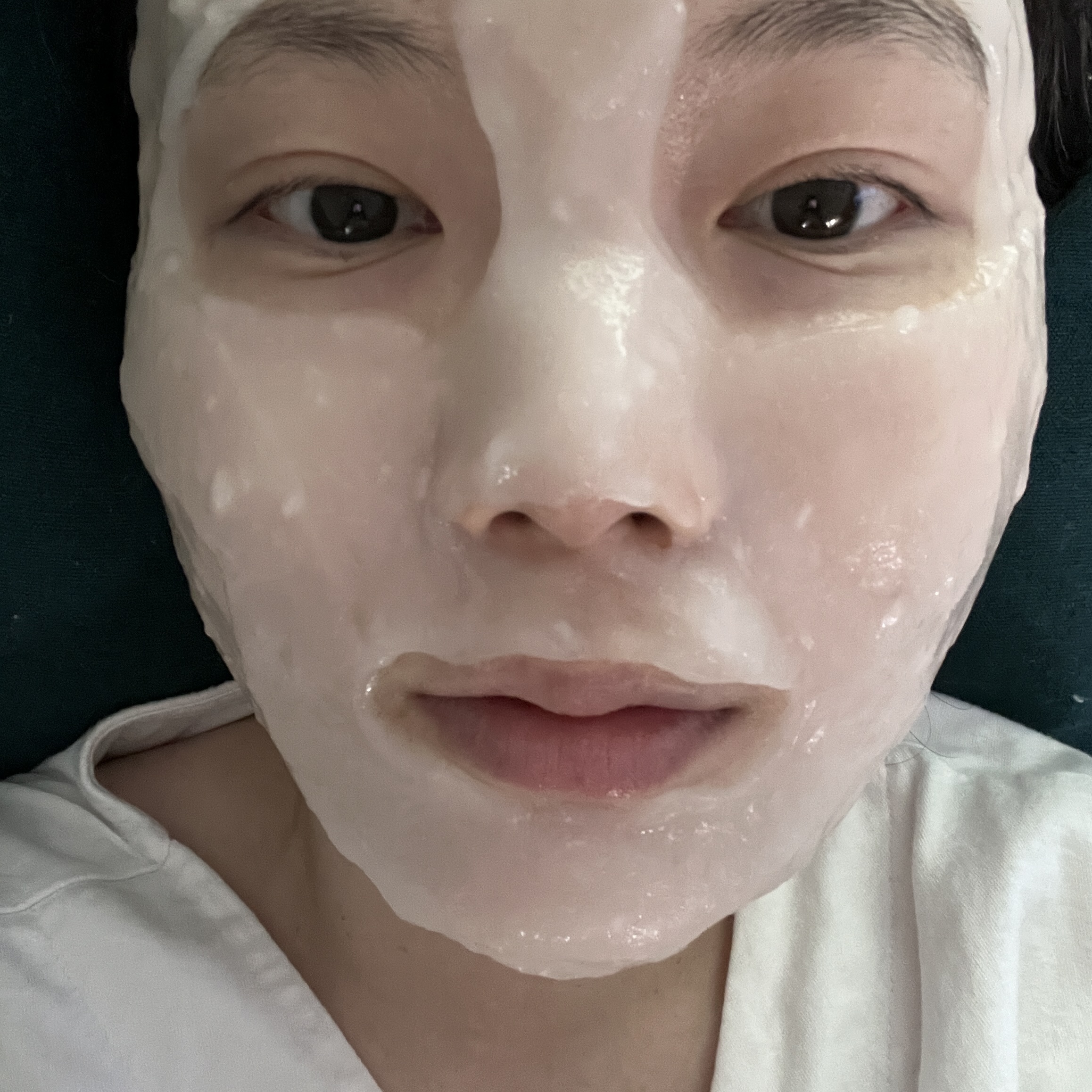 그냥 예쁘게 발라질 때까지, 고르고 평평하게 그위에 계속 덧바르고 덧바르고 해주시면 정말 잘 바르실 수 있어요. 그렇게 바르고, 20분정도 있다가 팩을 떼어내면 이렇게 됩니다.