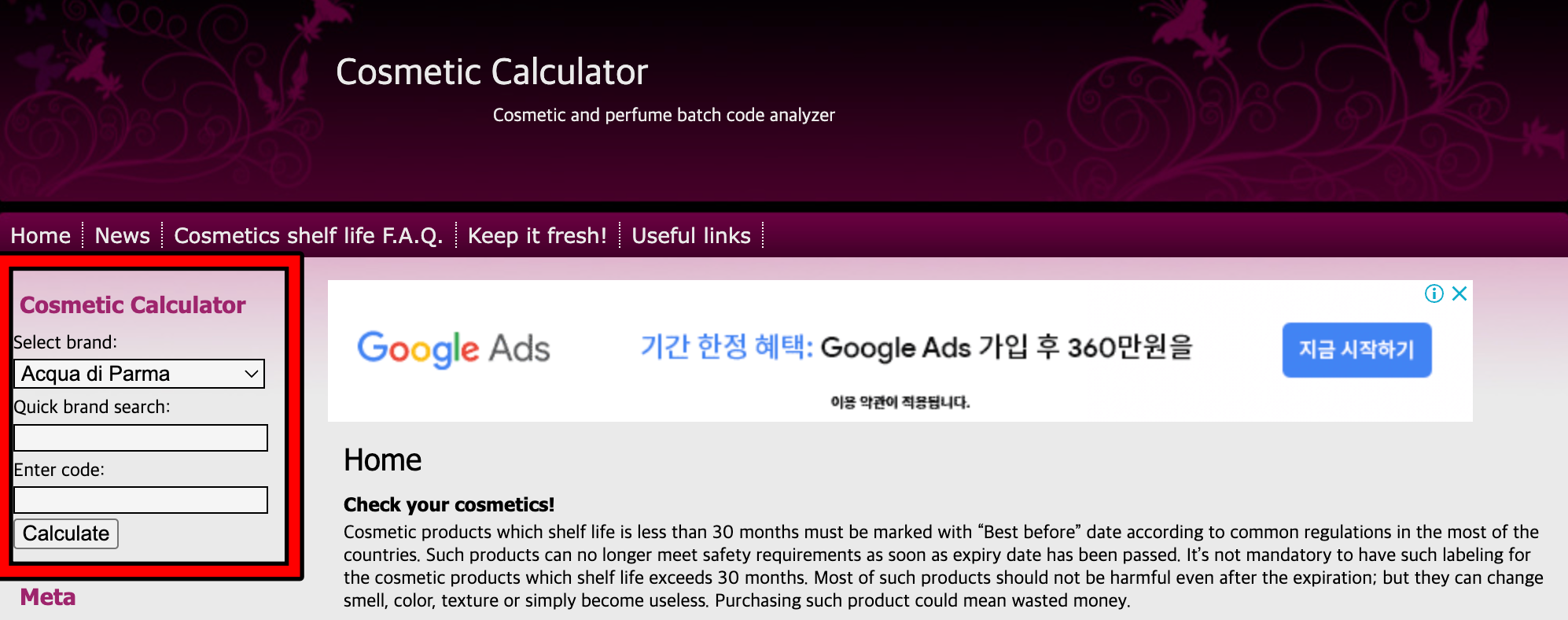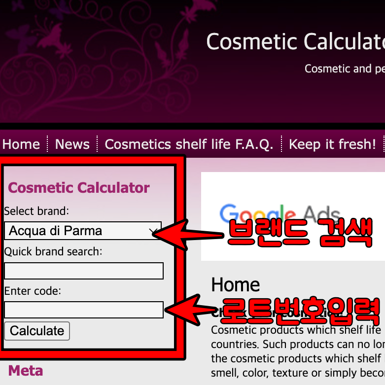 1. 사이트 접속 후 Cosmetic Calculator를 선택합니다.
